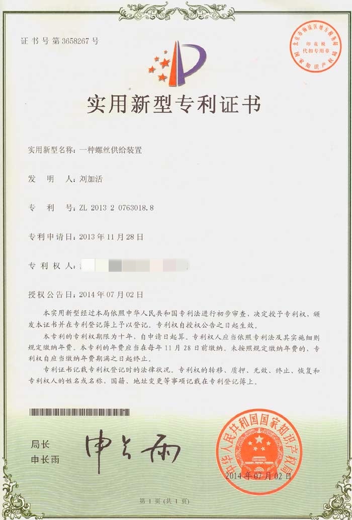 螺絲機專業生產廠家已通過ISO9001質量管理體系認證